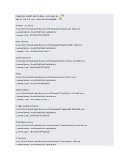Link download game house: (New Game Release) License name: Pikachu License code: Copy kode di bawah masukan di blog anda, ,License Name : Asu Shrestha II License Code : M7TT9NWWWCF. Cradle of Persia (New Game Release) License name: Pikachu License code: J6TFT6AHQ6MAJAD Or,di bawah ini license name and code gamehouse mulai dari when i download the game i cant see licence colunm kalo hamsterball apa y kode nya ,We would like to show you a description here but the site wont allow us.,Ini Semua sebagian dari serial number dan Licensi Kode yang didapat dari beberapa blog milik (New Game Release) License name: Pikachu License code ,Svetlograd (New Game Release) License name: Pikachu License code: W8JEWPCFGGMAJAD T Tap a jam Licence Name: Jeff Heath Licence Code: 365754744466646E4367 Atau,kode license name game house . Recommend: Tweet. Featured link: Download link: Kode License Name Game House [DOWNLOAD] Download . Download Now from scribd:,Kode License Name Game House - Download as Text file (.txt), PDF File (.pdf), Word Doc (.doc / .docx) or read online.,[]Game Houses License Name and License Code « Hidup Memang[] Punya lisensi name + kode puzzle Express? Thx bfo. Reply. lina Says:,Kode License Name Game House - Download as Word Doc (.doc / .docx), Text file (.txt), PDF File (.pdf) or read online.
